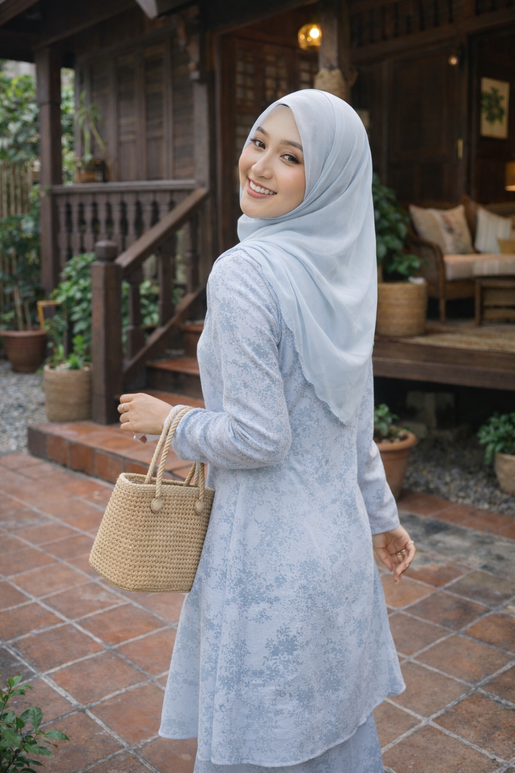 Potongan kemas dan memperindah susuk tubuh, menjadikan pemakai tampil anggun tanpa mengorbankan keselesaan — sesuai dipakai sepanjang hari.