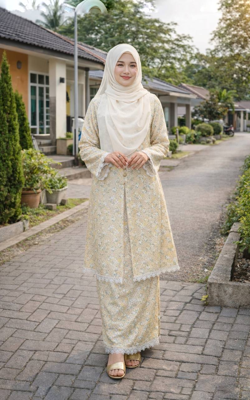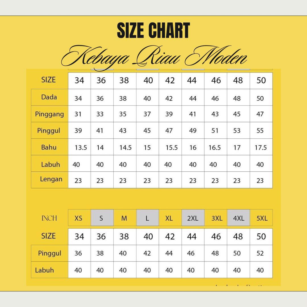 Kebaya Butang Riau ini mengekalkan identiti kebaya butang klasik, tetapi dimodenkan dengan potongan Riau yang lebih terletak dan mesra badan — bahu tak jatuh, pinggul tak tarik, dan garis pinggang nampak kemas tanpa ketat.