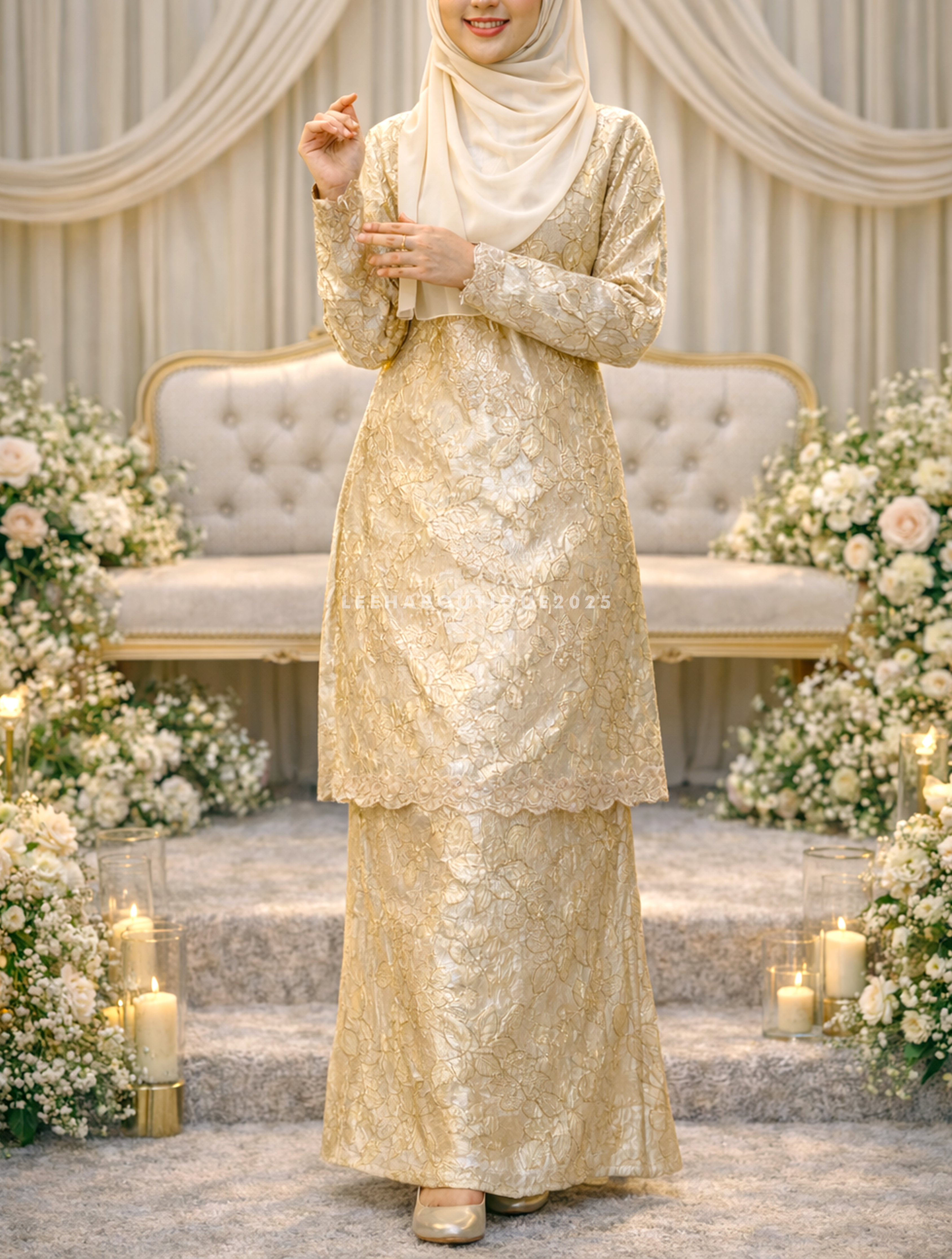 Material soft brocade, lembut memeluk tubuh,